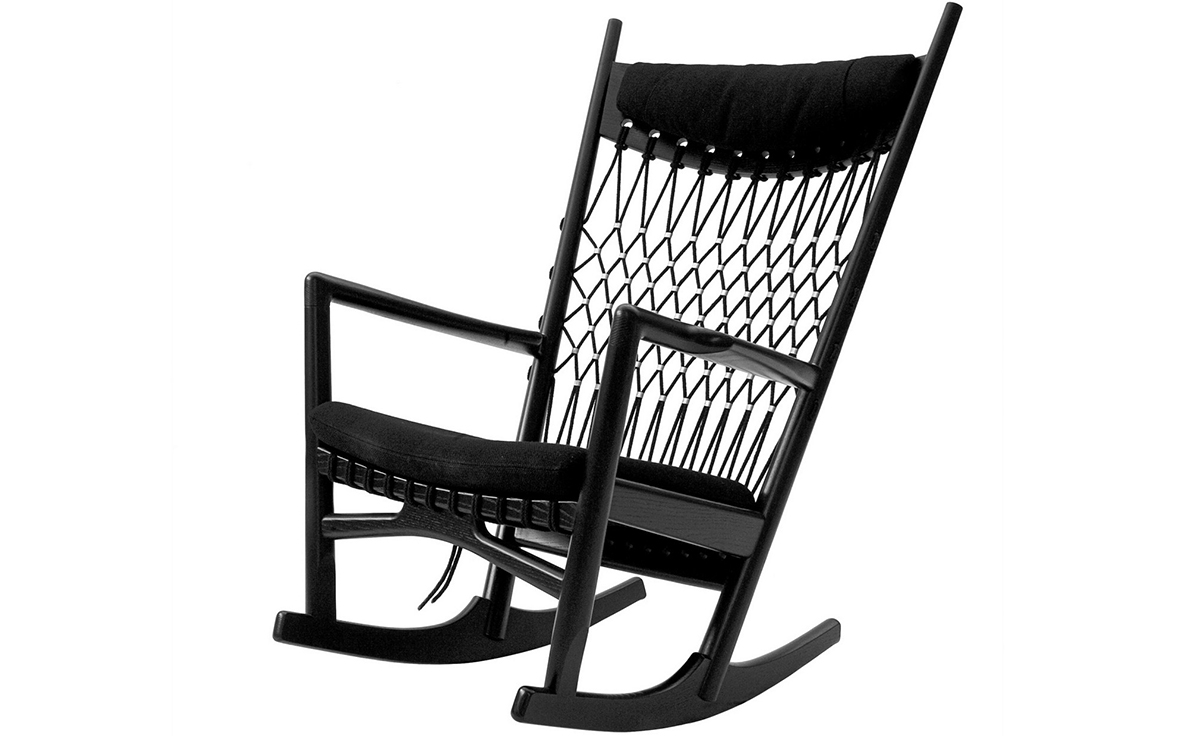 Rocking Chair(摇椅)是大师Hans J. Wegner设计的众多摇椅中的经典之作。摇椅具有简洁的线条,精准的的人体工学结构,是Hans J. Wegner在1944年为身怀六甲的妻子设计,扶手前端微微向外展开,是为让妻子方便起身。实木制成,轻便耐用,简约单纯,仍于潮流中立于不败之地,为Hans J. Wegner最受欢迎的经典作品之一。我们已经能从中感受到圈椅的影子。摇椅水曲柳制作,坐垫麻布软布(内部填充优质海绵),棉绳编织(有白色,黑色,棕红色可选)。