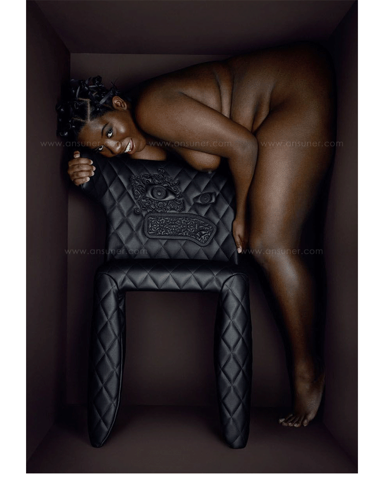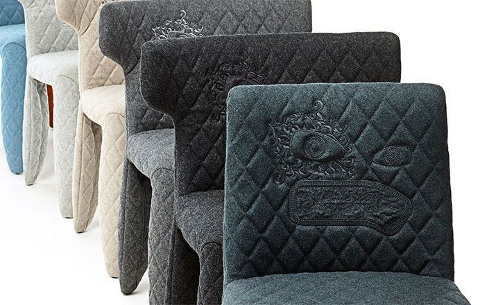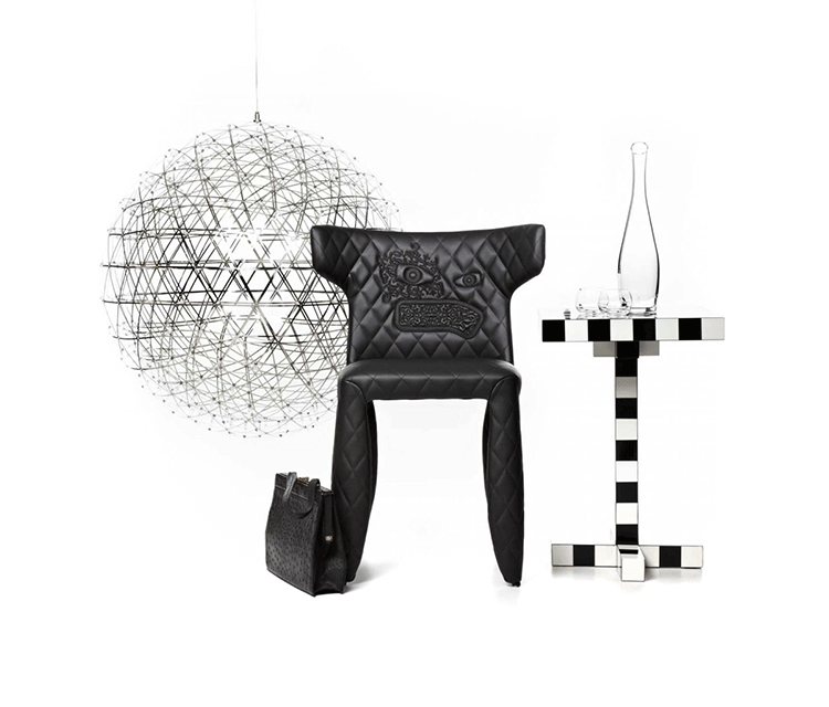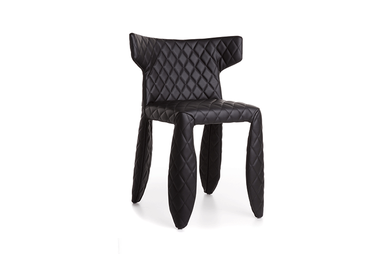 "A soft,puffy and stylish chair with an optional monster face embroidered on the backrest.The monster is a symbol of the eternal battle between opposite forces that take place in life and can be easily recognized inside ourselves,if we have the courage to open our eyes.Scary? Not at all!You forget about the monster once you sit down and enjoy the chair's comfort and softness.Marcel Wanders grew up in Boxtel,the Netherlands and graduated cum laude from the School of the Arts Arnhem in 1988.His fame started with the iconic Knotted Chair in 1996.He is now designing for the biggest European contemporary design manufacturers including Moooi of which he is also art director and co-owner.He works on architectural,interior design and consumer home appliances.His designs have been selected for the most important design collections and exhibitions around the world.Monster chair is offered with a synthetic leather upholstery in black.The chairs can be ordered with or without monster face and with or without armrests. The monster embroidery is identical in both versions."