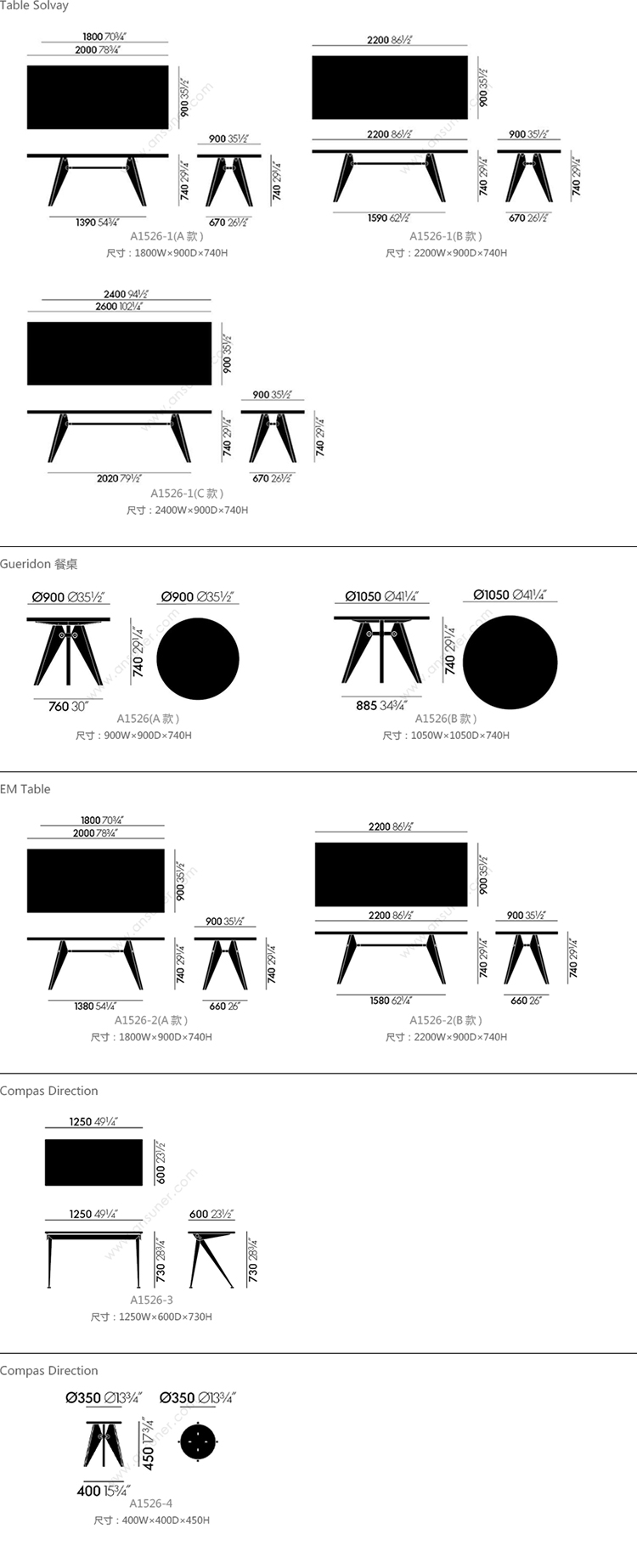 Table Solvay 系列尺寸/示意图