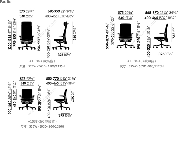 Pacific 大班椅 系列尺寸/示意图