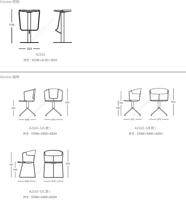 Uncino 系列尺寸/示意图