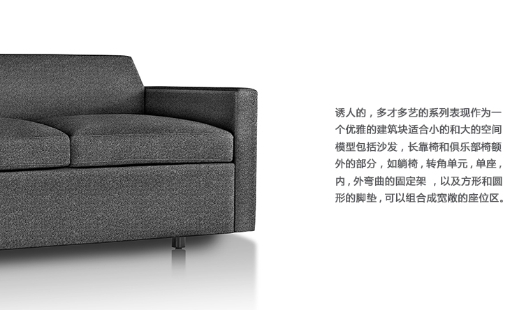 BassamFellows的设计采用了完全的软垫框架,没有明显的腿部,BassamFellows的设计意图是斜面提供一个简单的靠背——一种永恒的美学,与Herman Miller的现代经典相协调。