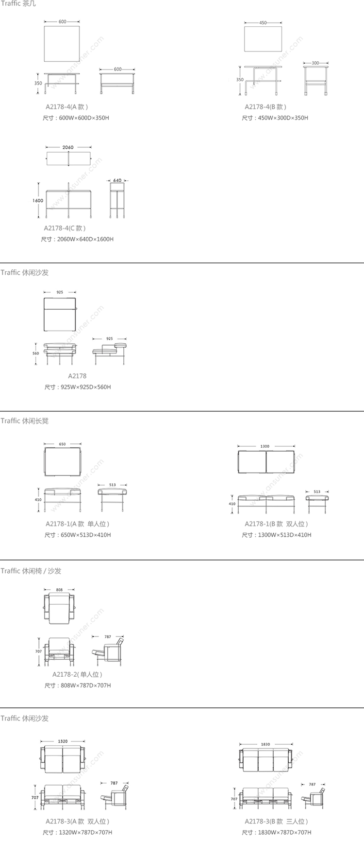 Traffic 系列尺寸/示意图