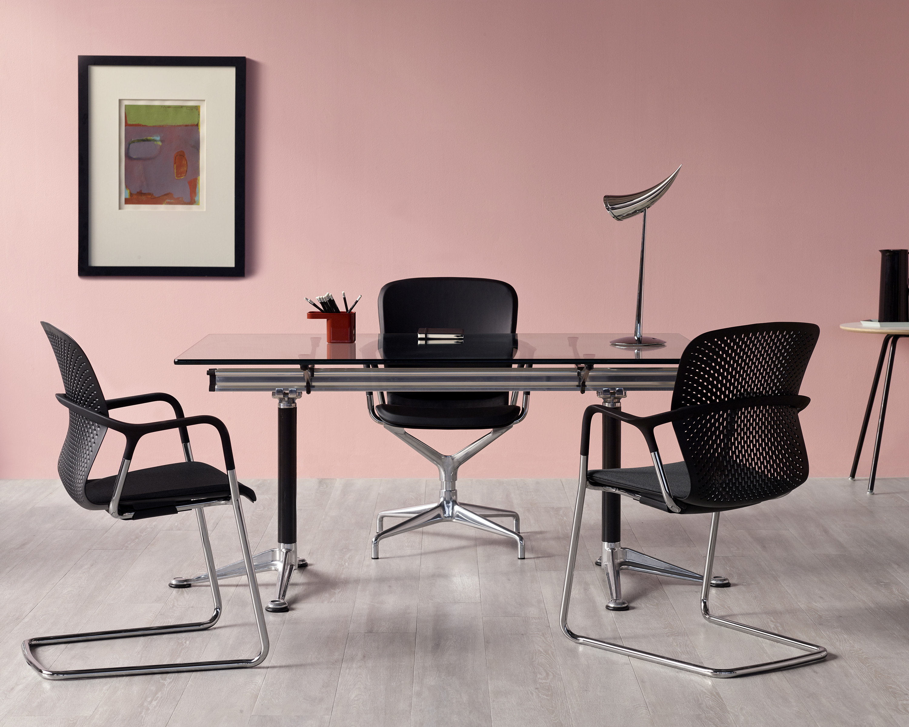 独特的中央铝制横梁使这款由Bruce Burdick设计的会议桌拥有出众的外观。这款精致的会议桌成套提供,也可以选配组件定制(包括玻璃或石制的两种顶面形状),外观与众不同,功能强大,适应性极佳。
