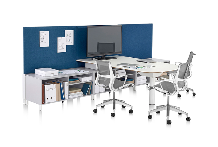 Pari是一个屏幕系列。 有些版本是独立式的,有些版本是贴在表面或框架上的,所有版本都是可粘的,并且共享无框架,薄的外形。 它们一致的细节和互补的颜色有助于美学的连续性,因为它们描绘了空间并提供了隐私。 Pari Screens与许多Herman Miller产品兼容,可在办公室环境中进行设置。 使用Pari Screens,组织可以压缩工作站并在较低的墙壁高度进行标准化,而不会牺牲员工所需的隐私,以便他们可以集中注意力,或创建个人空间的边界让他们感到舒适。