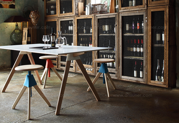 Topsy可调高度桌是Konstantin Grcic系列野生束系列的一部分。这三条腿的桌子是由实心的山毛榉木材和机械塑料零件制成.由于它的平稳运行机制,该桌易于调整,便于在各种场合中使用。Topsy是在各种环境工作,娱乐和私人的多功能选择。它可以作为一个可调节的桌子在一个角落,作为一个多用途的给餐厅使用,或作为儿童在幼儿园的桌子。