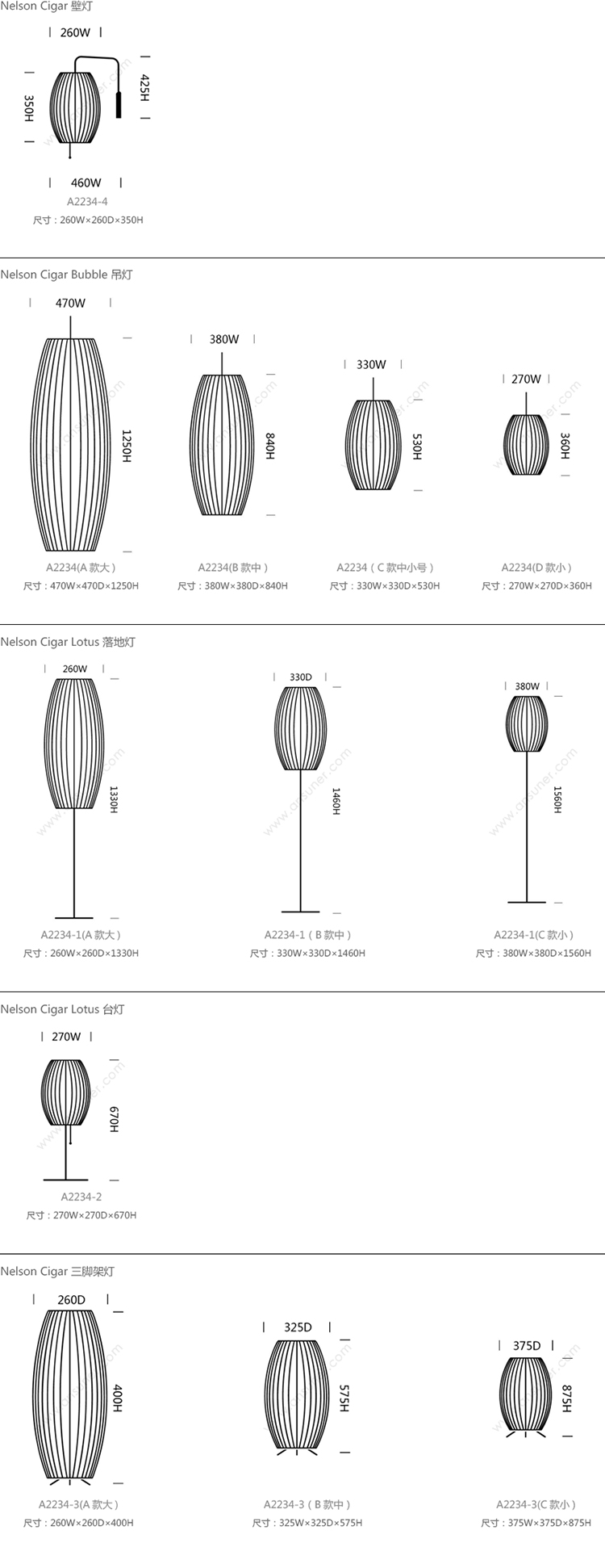 Nelson Cigar 壁灯 细节/功能展示