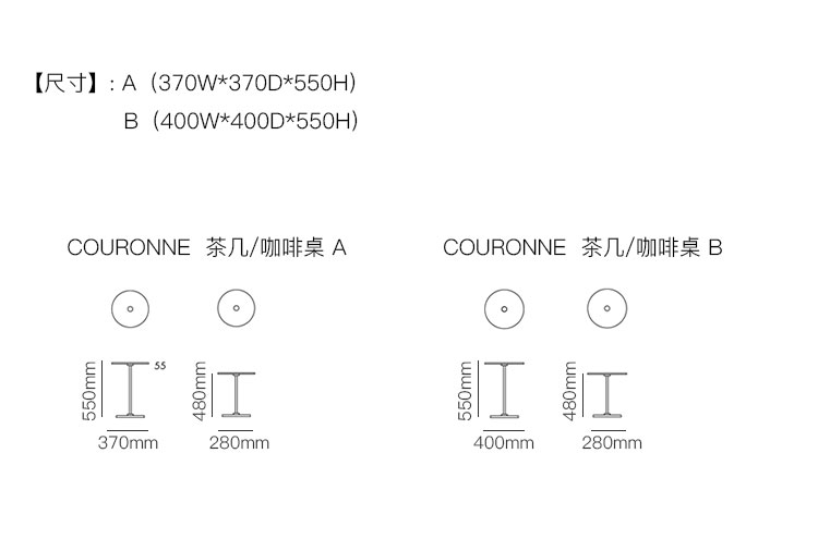 COURONNE  茶几/咖啡桌 系列尺寸/示意图