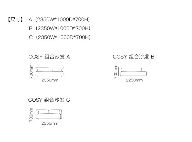 COSY 组合沙发 系列尺寸/示意图