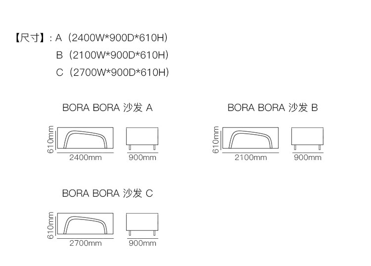 BORA BORA 沙发 系列尺寸/示意图