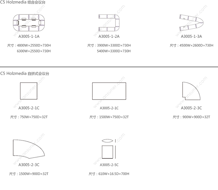 C5会议台系列 系列尺寸/示意图