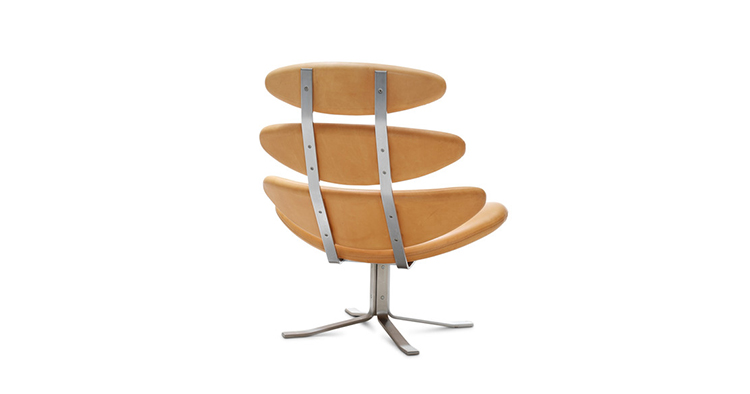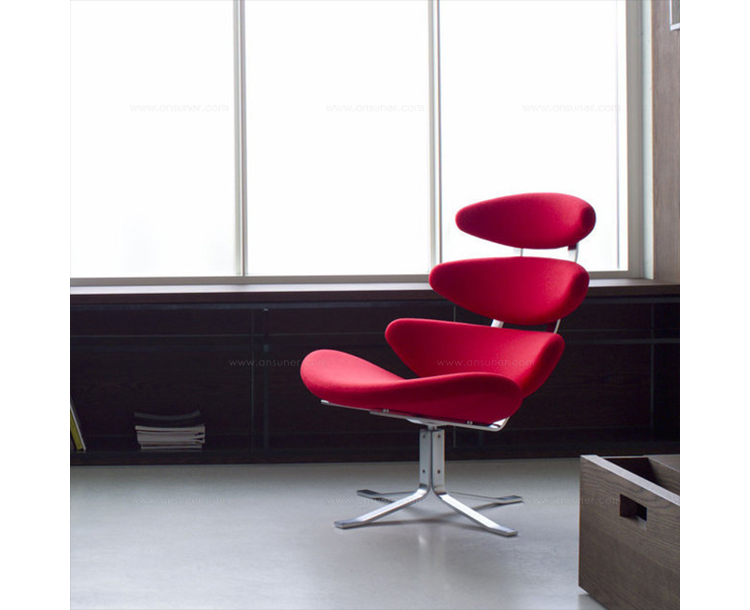Poul M. Volther 于1964年的设计的王冠躺椅家具系列,是Poul M. Volther最知名的现代家具设计作品,此系列包括Corona Lounger Chair(王冠躺椅)、Corona Lounger Ottoman (王冠休闲脚踏)及其组合Corona Lounger Chair and Ottoman(王冠躺椅&脚踏)。历经40余年的今天,其作品在纷繁现代家具设计中仍占有一席之地。椅子充满了雕塑感,斯堪德维亚风格的简洁外形和舒适的坐感都是这张椅子成为创世之作的原因,四个椭圆形组成一张独特的椅子,无论摆放在哪,都令人过目不忘。此系列家具采用高强度钢材制作,表面电镀处理,外面为真皮或布艺制作,可360度旋转,不可后仰。适用范围广,酒店、会所、高档餐厅、夜总会、别墅等。