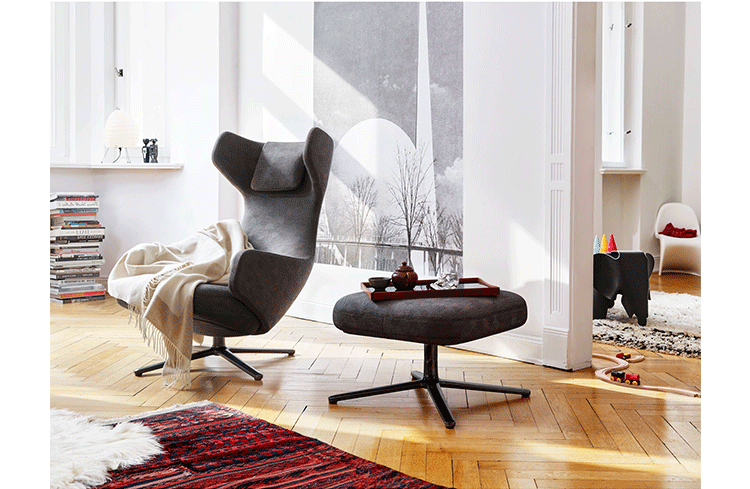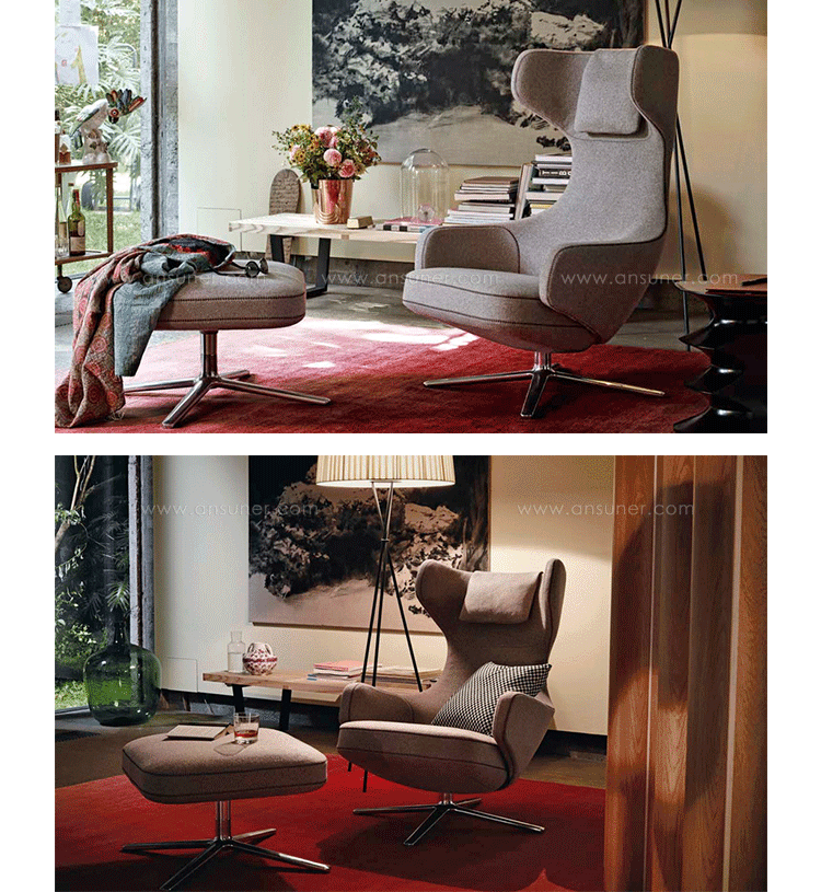 grand repos lounge chair and ottoman(grand repos 休闲椅&脚踏)由设计大师Antonio Citterio所设计的独特的,绝无仅有的休闲椅系列,椅子的创作面临的挑战如同伊姆斯夫妇当初设计著名的伊姆斯休闲椅一样,但正因如此,才能成为绝世经典。grand repos系列休闲椅采用钢制铝合金脚架、聚氨酯海绵填充、高级布艺扪面,可随意调整坐姿和高度,也可以放平躺,配上舒适的羽毛衬垫,无论阅读或者休憩,都非常舒服,符合人体工学,高档舒适,是办公,会议的理想选择。意大利设计师和建筑师 Antonio Citterio赋予了这边椅子永恒的优雅气质与无与伦比的舒适,是当代设计的经典,无论用在办公、商业、家庭都是非常高贵大气的。