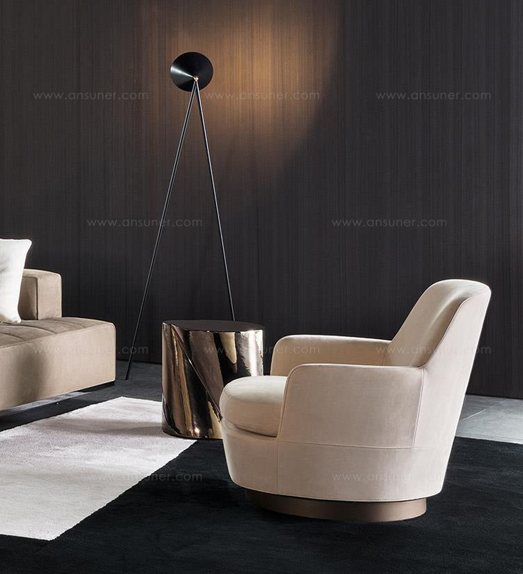 底座可以旋转的Jacques沙发拥有柔软的坐垫和靠背,带来绝佳的舒适感,尤其适合打造休闲放松的空间,可以搭配Song边几和脚凳,达到相得益彰的效果,边几不仅可以用来放置台灯,也可以用来放置各种小物件。