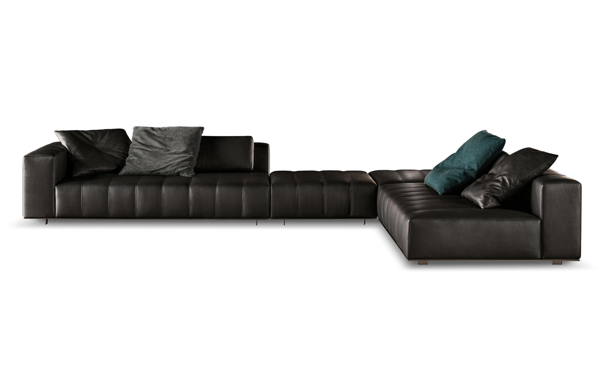 弗里曼“裁缝”项目的理念和原创性在其衍生系列弗里曼“休息室”中也有所体现。弗里曼“休息室”沙发纵深度有所降低,不仅更易搭配较小的居住空间,还可以用在接待场所,如等候室、前台区域、行政办公室。单组沙发的特点在于采用规则图形纹样的优雅缝线设计,可以自由随性地组合沙发,打造灵动的造型。“Wing”扶手拥有轻盈的线条,这要得益于采用聚氨酯为基材的泡沫金属框架。精致的包覆材料展现出公司运用复杂面料进行剪裁加工的实力。皮革和织物面料的各个部件通过浅铜色人造皮革束带和双缝线工艺连接在一起,打造出独特的纵深效果。