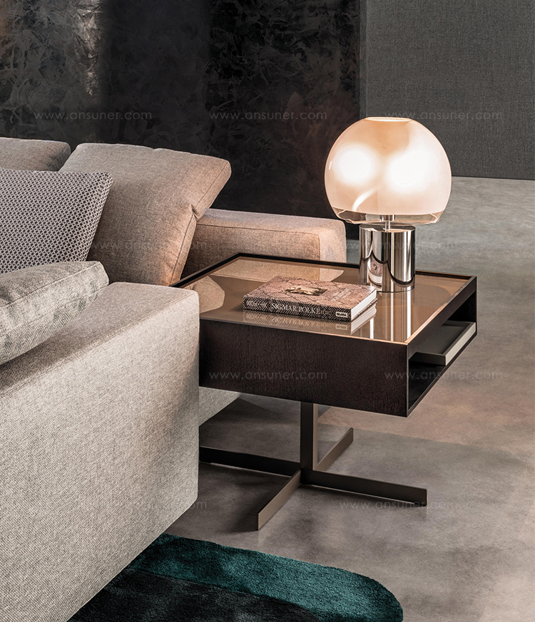 克洛塞边几特别为搭配Yang沙发系列而设计,拥有实用的置物表面和收纳空间。Close边几的理想位置可以是在靠背椅和Yang沙发之间,提供使用的置物表面:每件要用的物品近在咫尺,或是整齐地摆放在下方的收纳空间中,您可以在沙发上尽享放松时光。基座采用十字的简洁造型,采用金属制成,搭配亚光铜色表面。上方部分的置物空间采用前后皆可用的开放式设计,并且搭配一个可取下的托盘,有两个版本可供选择:一种是构架为Moka色漆面的开孔橡木,上方面板为粘土色亮光漆,内部的托盘为粘土色亚光漆;另一种是构架为粘土色亚光漆,上方面板和内部托盘为Moka色漆面的开孔橡木。除了不同尺寸的边几以外,Close系列还包括边柜、写字台和床头柜。