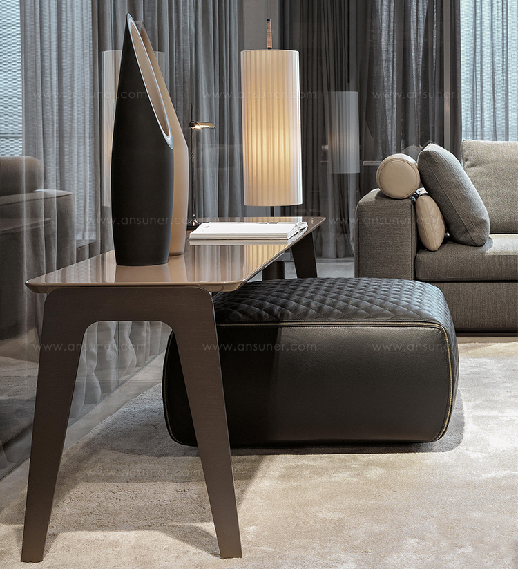 以精美梣木底座致敬传统黑檀木艺术,搭配拥有圆滑转角与柔和饰边的光泽漆面黑檀木、黑色脱蜡琉璃及 Marron Damasco 大理石台板。
