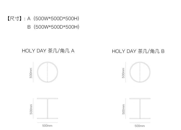 HOLY DAY 茶几/角几 系列尺寸/示意图