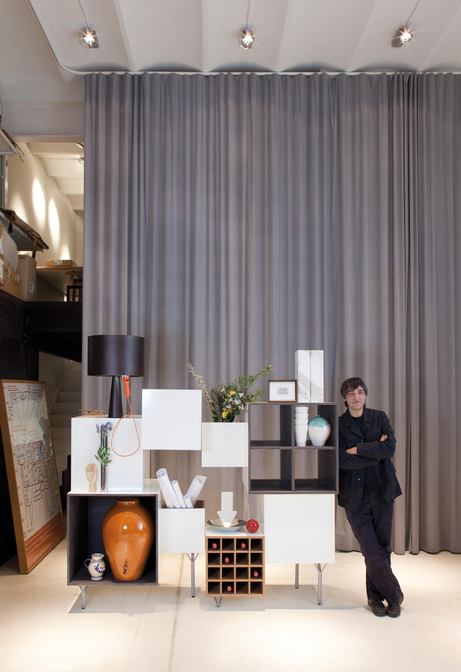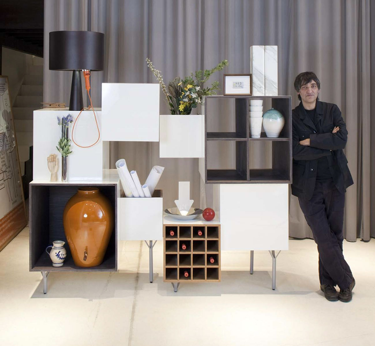 MartíGuixé是非典型的创作者。这就是为什么他拒绝任何标签或试图将他归类为设计师的原因。在这一职业中,他能够找到自己的表达空间,在其中他可以自然发展并拥有令人惊讶的自由。他的专长在于思想领域,而他的长处在于能够实现思想。他处理抽象概念以找到特定问题的解决方案。如果有人要求他设计椅子,Guixé将为他提供一个坐下的想法。看起来很容易,但事实是,没有其他人像他一样。他于1997年带着传统的加泰罗尼亚面包加蕃茄酱(SPAMT)的倒装版进入社会,此后,他的每一个新项目都为我们带来惊喜。他喜欢扭转局面,并继续这样做。在BD,我们邀请他计划一个新的橱柜,以构成该系列的一部分,其中包括诸如Jaime Hayon的优雅Multileg和法国图形艺术家Antoine et Manuel的壮观的Tout va bien之类的个人作品。他的建议叫自由港。“这是一种由集装箱立方体制成的模块化家具,具有多种功能。它们的体积,位置和完成度都有动态变化。所有不同的和所有的人工合成木材始终在内部。”它具有多功能性。非常适合作为聚会的中心。它允许不同的配置,也可以作为孤岛。而且,如果我们要求Guixé进行更大尺寸的双版印刷,他将其再次按字面意义进行翻版,并以简单的叠加方式进行构建。