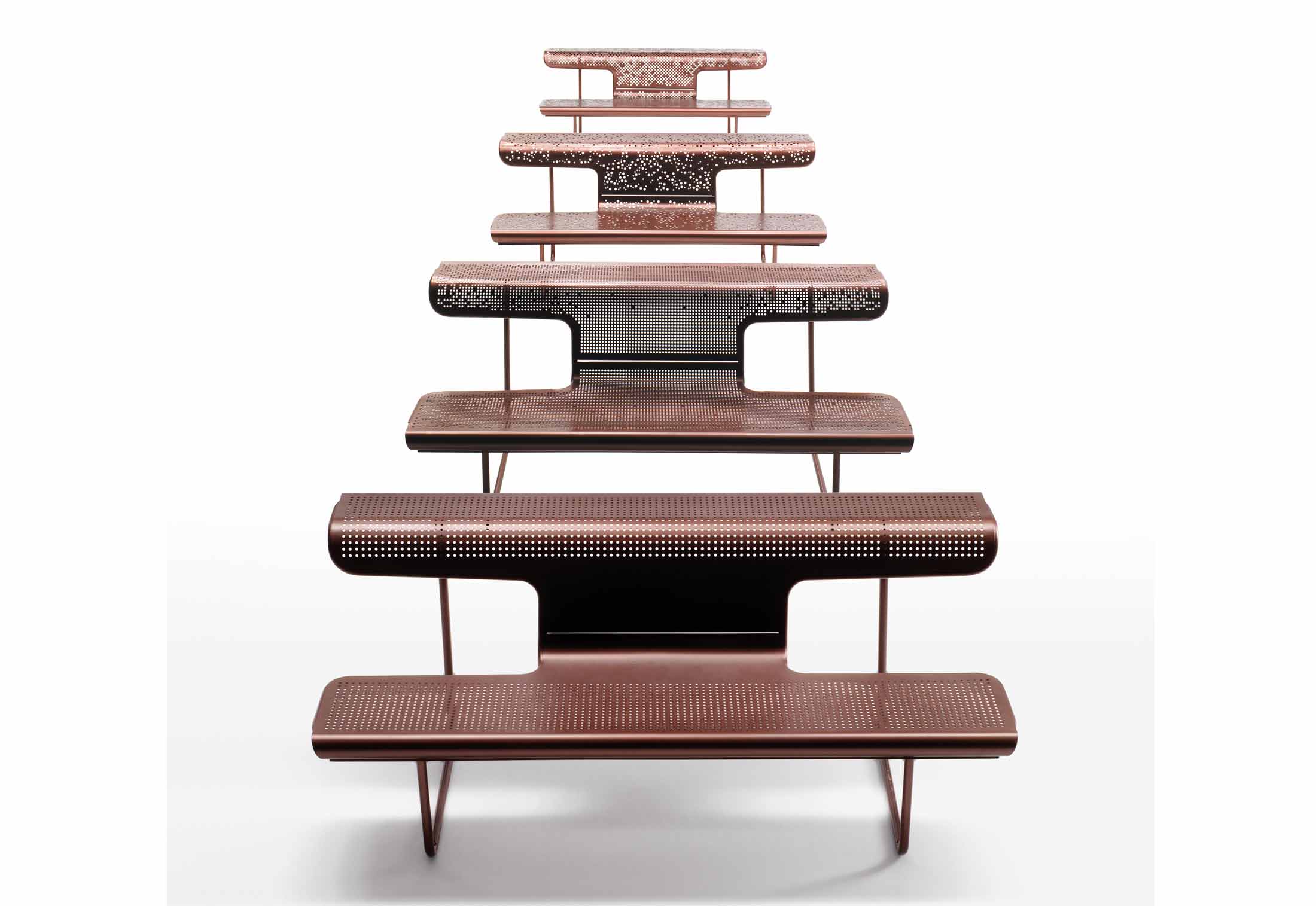 瑞士的长椅 一类新产品的形式一部分屋宇署已命名的公交家具概念。它们可以安装以及内部或外部,提供一份公共公园,机场终端或购物中心。的轮廓Catalano长凳是公共长凳上最舒适的长凳。Tusquets和Clotet从AntoniGaudí为巴塞罗那ParkGüell设计的那张长凳中采用了它,因为他们认为这是无法改进的。金属穿孔的设计床单是瑞士长凳上的另一个新颖之处 。您可以说这是一种三重新颖性,因为Häberli为该项目创建了三种特殊的钢材形状。花,星和点,量身定制的变体,增加了该系列公共长凳提供的选择,同样是更简单和经济的版本,Basic。它们采用舒适的外形以及穿孔金属板的所有优点:透明,因此它们不会占据空间,避免积水,甚至在夏天还凉爽。