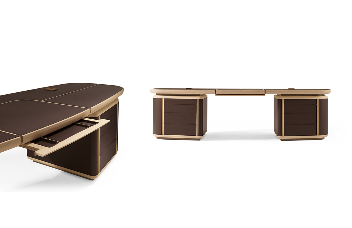 抽屉的柜子是在弯曲胶合板覆盖着马鞍 皮革,完全可移动的抽屉休会 系统关闭滑动跑步者和沉默。 一个中央滑 抽屉里放置两个柜子的抽屉和之间 特点是车厢内的存在,覆盖 与马鞍皮革,笔和纸。 这个概要文件的基础, 顶部插入和抽屉的柜子之间的间隔 和顶部画在青铜色自然效果。
