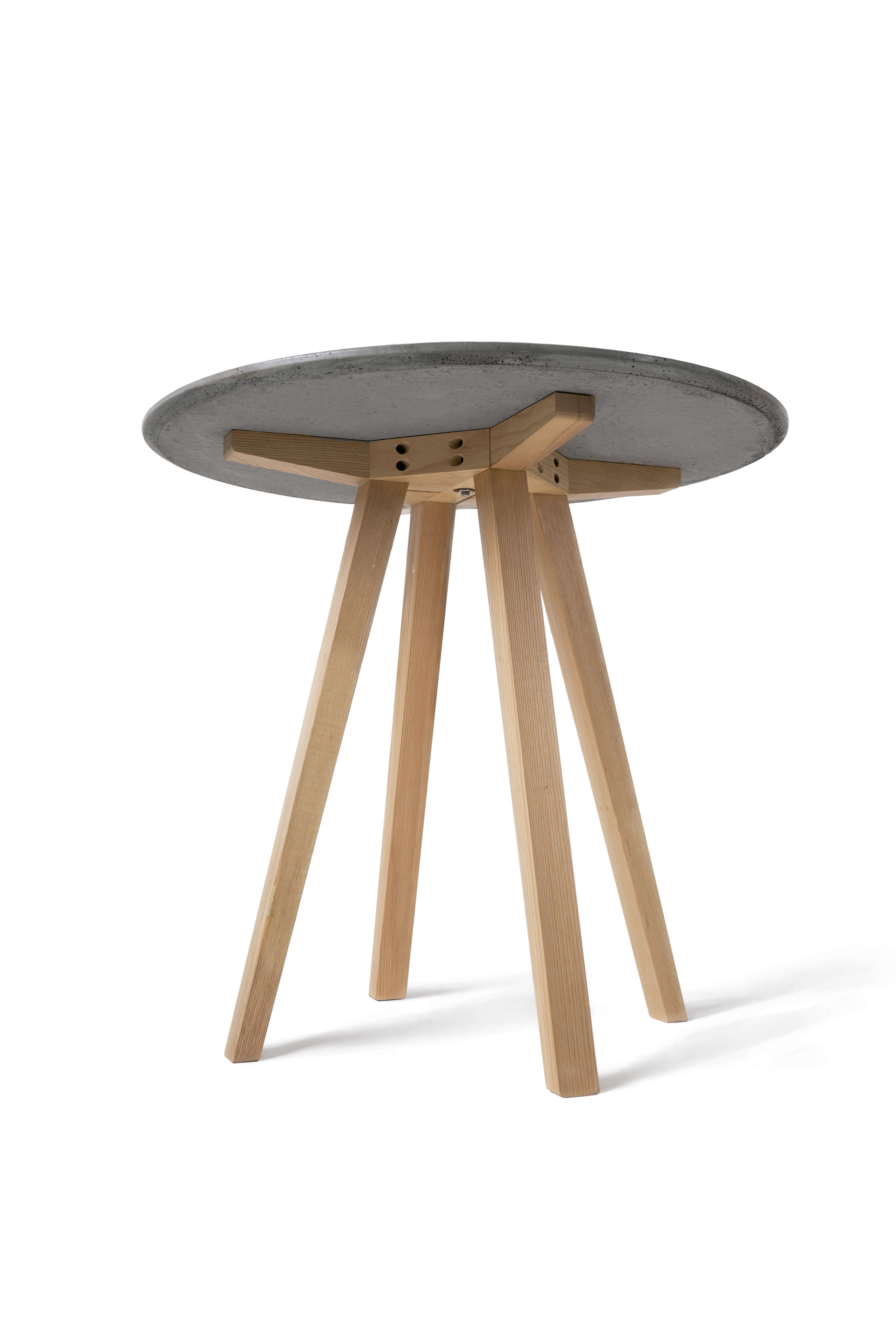 木材与榫,古老的材料传统的工艺;水泥与螺丝,现代工业文明发展不可或缺的载体。它们的碰撞演绎着新的可能。 以榫结构将凳子腿链接,并形成十字托架支撑水泥面板,最后通过螺丝紧固并紧压榫托架,化解了可拆卸榫长时间使用所带来的磨损与松动,结实耐用。