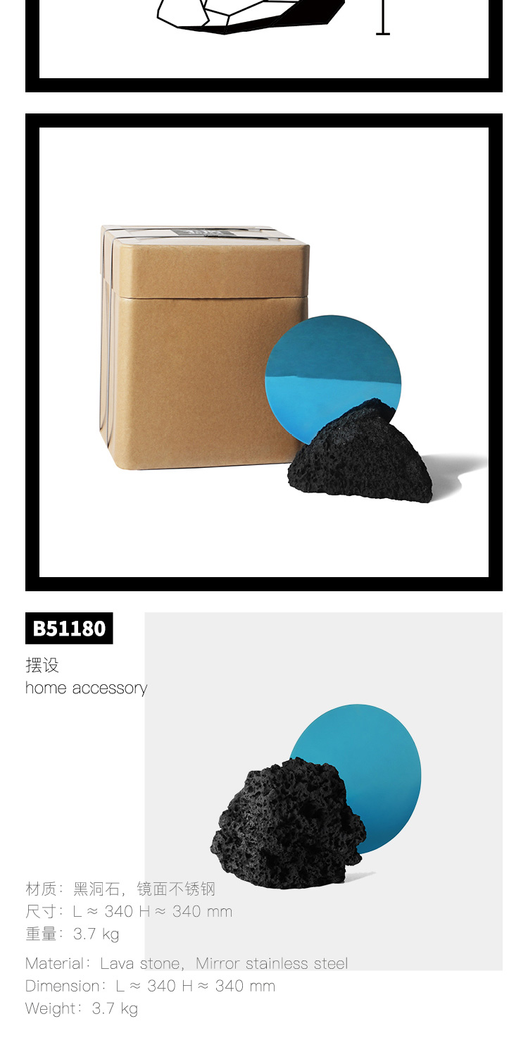 洞黑系列,洞悉秘密,来自地心的喷发。极想把洞石的芳华寂寞倾述出来,呈现于日常并使用它。尝试将洞石塑造各种形态,原材,呈浅灰色;亚光,颜色渐渐加黑;抛光,纯黑了。三种状态,魅力各异。深入践行,洞石的特性愈显,吸音、防水、防火、保温、隔热,耐酸碱、耐腐蚀、耐沾污、耐霉变,且无污染,无放射性。惊喜不断,质量很轻的洞石,居然强度很高,轻、硬,可塑性强,气孔式的通透,赋予了极简中的奢华。触目的拙,爱不释手。
