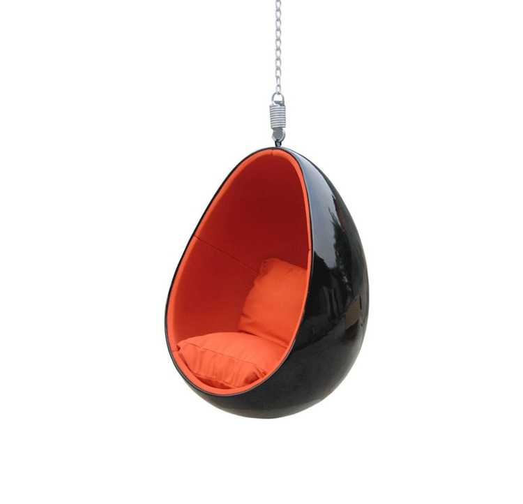 egg hanging chair(蛋挂椅)设计雏形为其经典的“球椅”,是介乎于家具和建筑之间的一种产品,它好像“房间里的房间”,椅子很矮,坐进去,就仿佛陷入另外的一个世界,能迅速拥有安静舒适的环境,外界的噪音也被抵挡住。可以躲在里面冥想、放松身心,或者打私人电话。设计师阿尼奥就在自己那把原版的“球椅”内壁上装了一个红色的电话机,“球椅”提供一个相对私密的空间。椅子底部有轴,能360度旋转,坐在里面的人向外看,眼前的风景会随着转动而改变。这样,即使蜷缩在椅子里,也不会有与外界完全隔离的孤独感。就是这样一个狭小的空间,却带给了人们无比的安全感与舒适感,也就是这把椅子的诞生,掀开了“PODLIFE” 的篇章。"