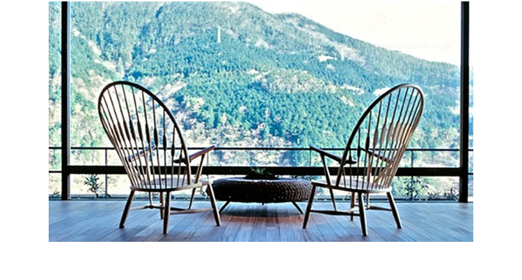 孔雀椅 Peacock 是 Finn Juhl(设计师)给的,他第一眼看到就叫出这个名字然后一直延续至今。 细骨条的椅背,以及形成孔雀样子的节,不仅仅给人带来视觉上的愉悦,同样也带来了良好的灵机性。