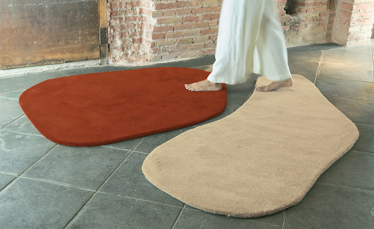 “石羊毛”系列的地毯创造了一个光滑卵石的河床,以适应长廊。不规则的轮廓和颜色为室内设计提供了无数的组合,充当了想象中的河流的垫脚石。