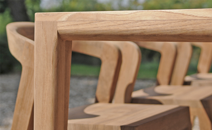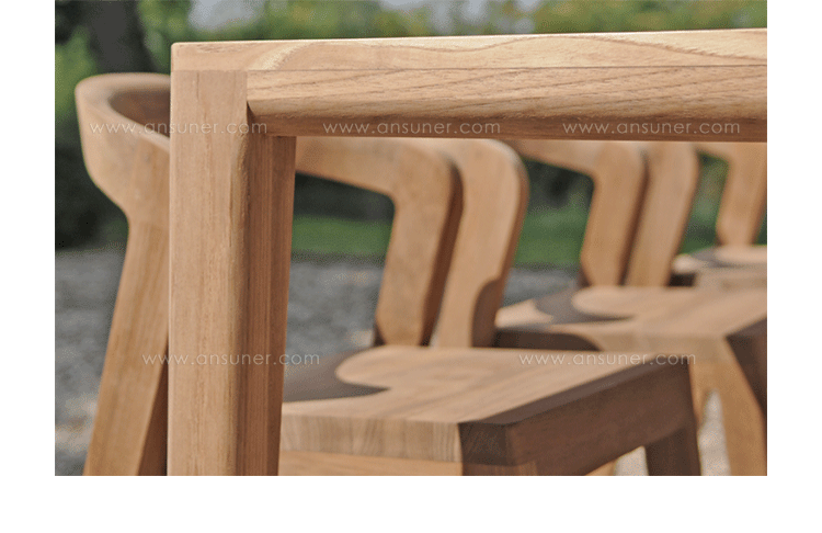 Elegant massive wooden table with an unique contemporary design,rounded edges at the table top and refined table legs.