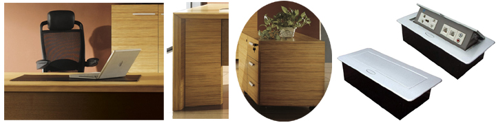 ※ 班台的面板侧板都是以斜三角处理似拉链缝合,更易拆装组合!板板柔美融合,风格明快理智,张弛有度,枫丹秋露的色彩为现代电子商务空间带来一抹诗意与浪漫,将科技融于美学,实现系列化、科技化、人性化、部件化、批量化、个性化的统一,让工作成为一种享受。此款班台可以选择如右图的手动线盒、电动线盒、以及毛刷翻盖线盒,适合你不同的办公需要,内部可配置动功能三插电源孔、网络接口、耳机音频接口、话筒接口、VGA接口,也可根据客户实际需要选择和定做。