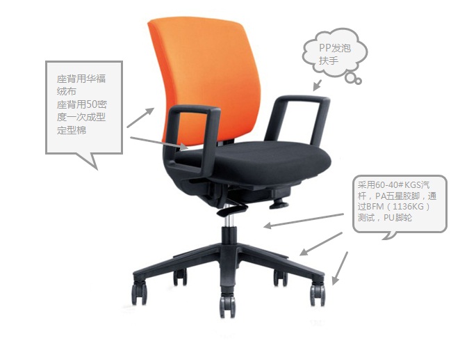 B:带发泡PP扶手,PP胶壳,用60-40#KGS汽杆,PA五星胶脚,通过BFM(1136KG)测