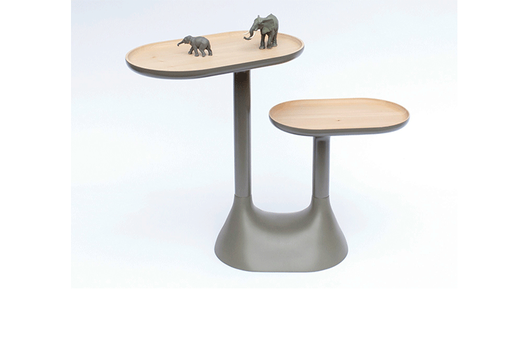 swivel coffee table(旋转咖啡桌)是法国设计师 Ionna Vautrin 设计的产品,身边朋友只要看过Ionna作品的人无一不喜爱,造型简洁饱满,带有强烈的拟人特征,可爱而有趣,Ionna将这种童话般的设计语言带入到我们日常生活的物品设计中,本来以为这样的造型应该只会在画册中出现。swivel coffee table(旋转咖啡桌)有两个旋转托盘,设计造型灵感来源于非洲的猴面包树︰渐狭成突破由纵向的叶子的不同分支承受了巨大压力。旋转咖啡桌由漆石灰木制成,两个旋转盘位于不同的高度,相互交错。可以将它放在沙发旁,或者作为床头柜,或者房间入口处,独特的设计和造型使得它能够适合不同的房间和环境。