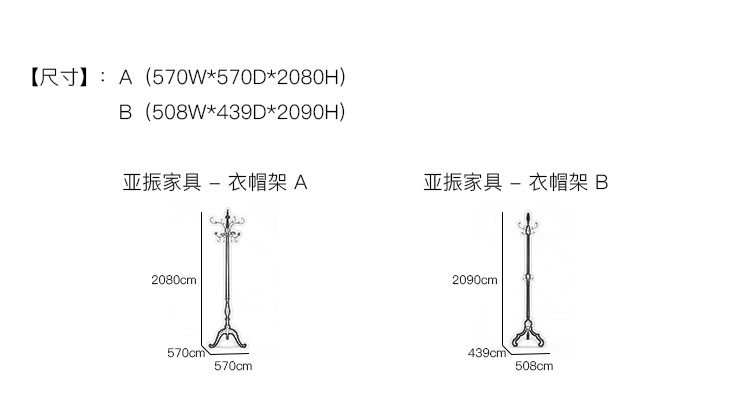 亚振家具 - 衣帽架 产品尺寸/示意图