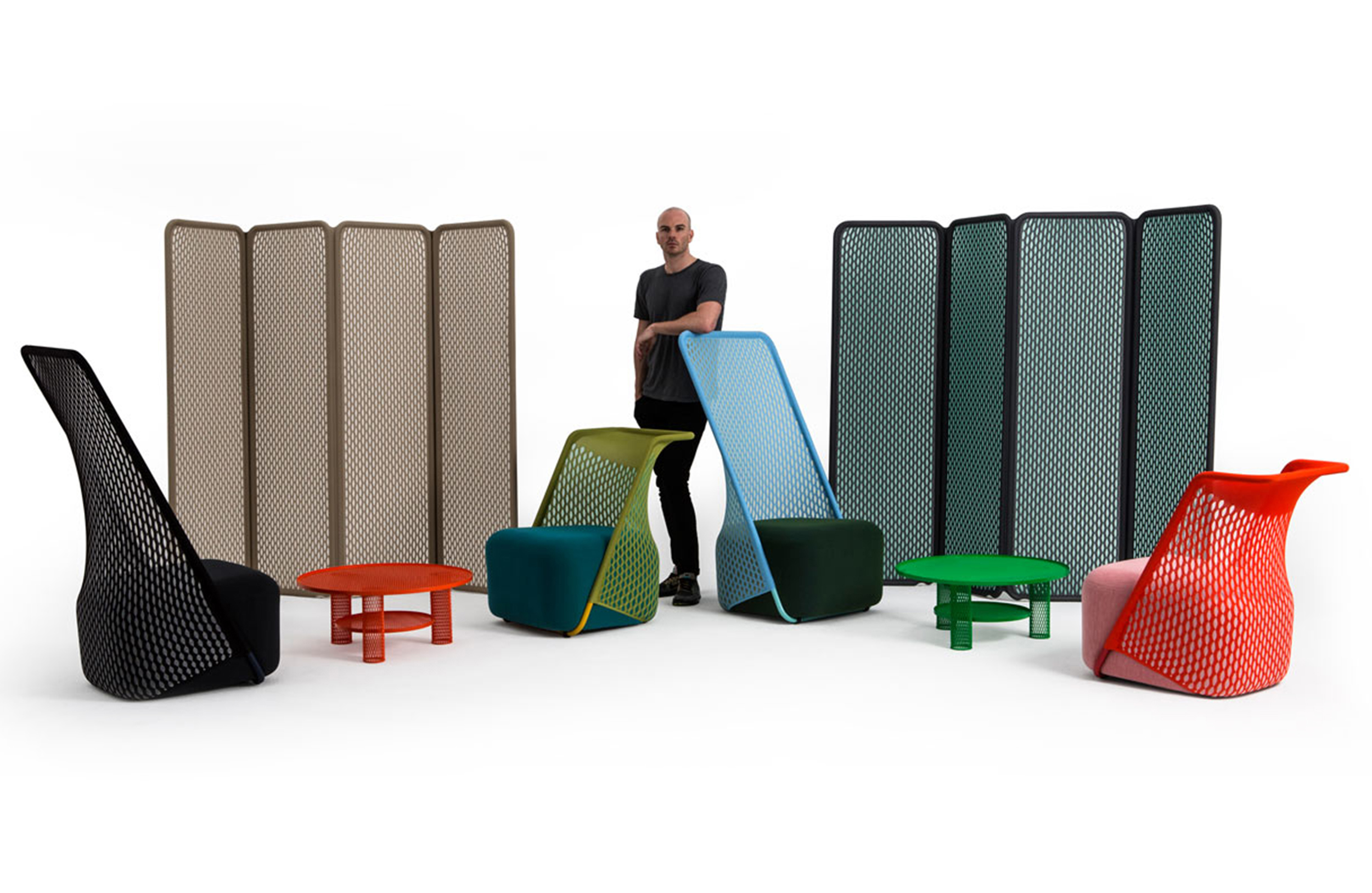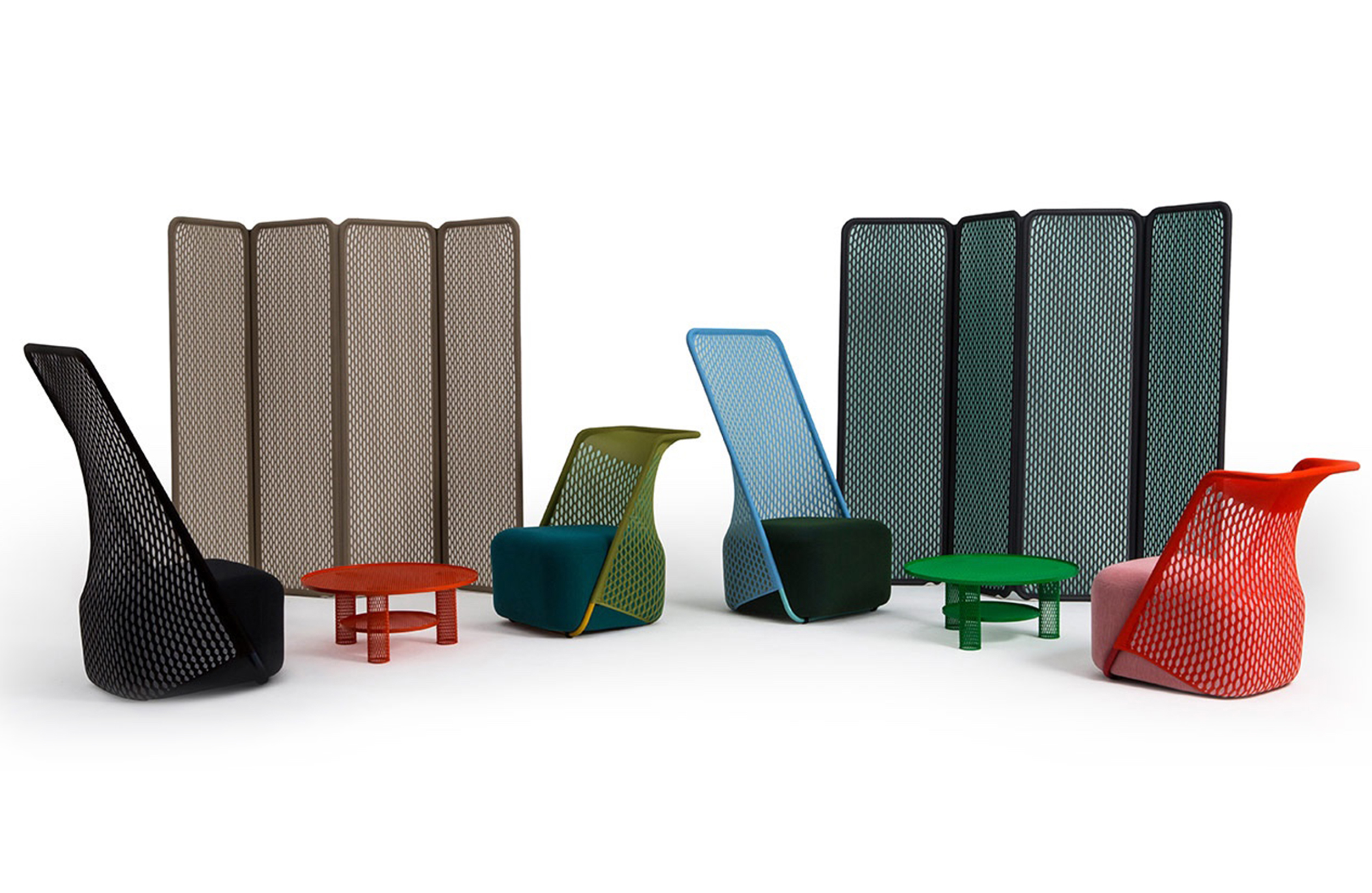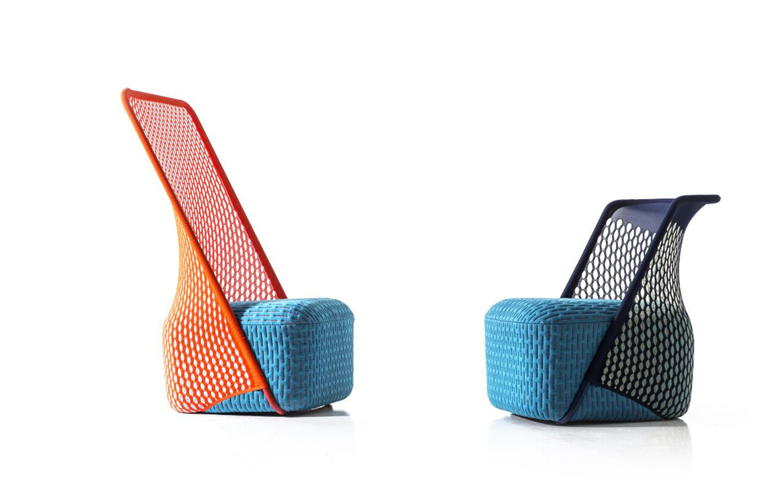 “摇篮”是两种类型座位的独特组合;一个网状结构吊床和一个传统的软垫沙发椅。扶手椅源于工作室的材料驱动、工艺主导、工业设计方法、网格材料的构建研究,以及传统座椅组件之间的关系研究。“摇床”采用了一种定制的剪裁模式,允许非弹性织物以三维的方式进行。这允许正确的张力,舒适地支持身体和视觉上和身体上减少产品的重量。