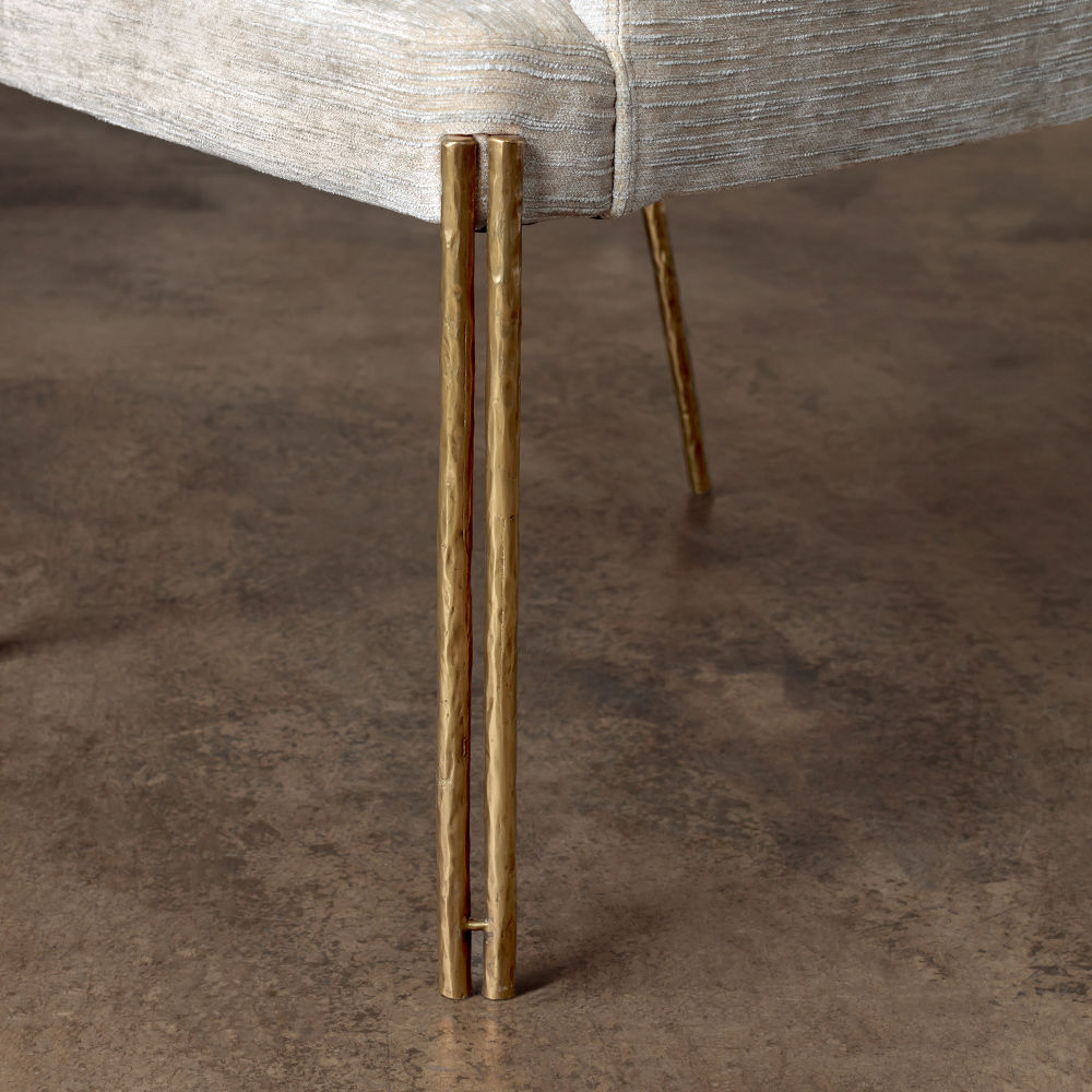 Melange 餐椅是经典造型的大胆诠释,是细致入微的现代设计的典范。 这款扶手椅采用坚固的铸造黄铜腿和手工制作而成,并采用轻微抛光的抛光黄铜色。 软垫主体有各种精选面料和皮革可供选择。