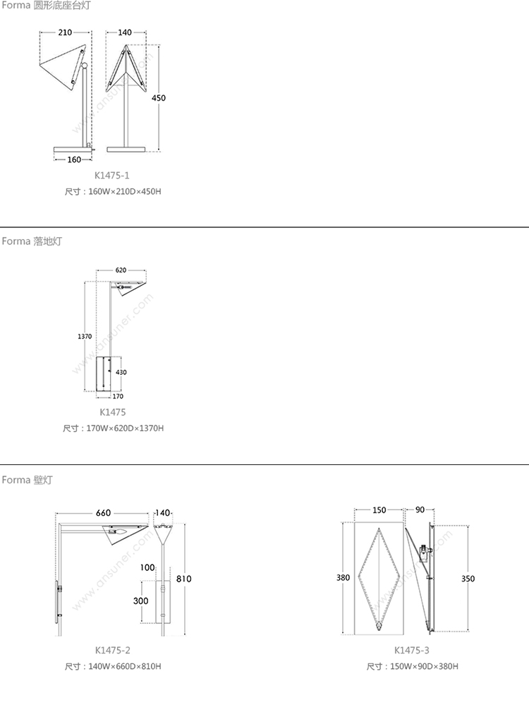 Forma 圆形底座台灯 系列尺寸/示意图