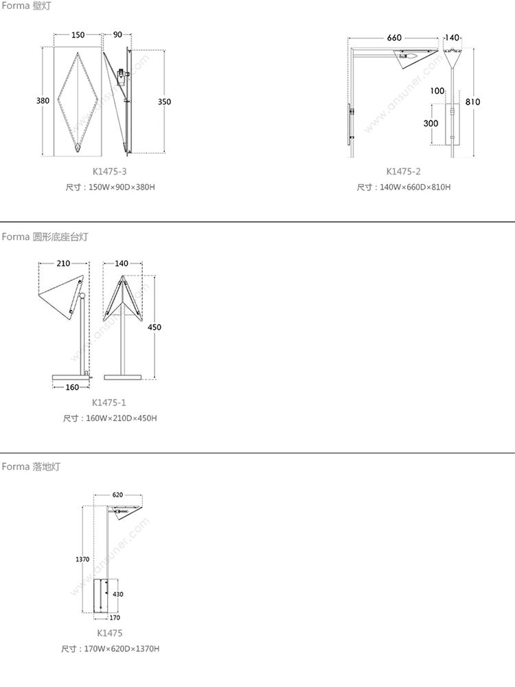 Forma 壁灯 系列尺寸/示意图