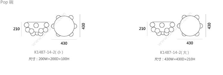Pop 碗 系列尺寸/示意图