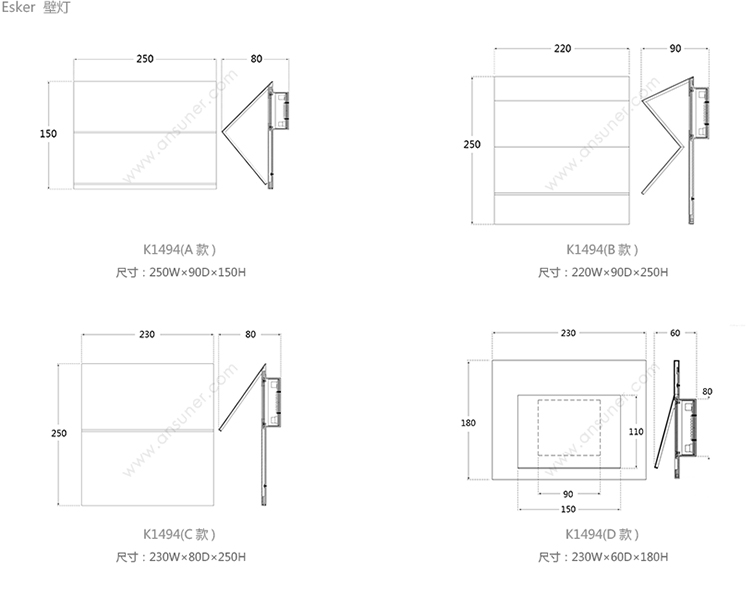 Esker 壁灯 系列尺寸/示意图