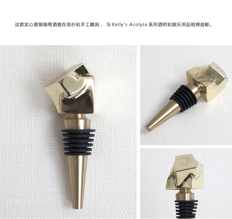 这款实心黄铜葡萄酒塞在洛杉矶手工雕刻,与Kelly's Acolyte系列酒吧和娱乐用品相得益彰。