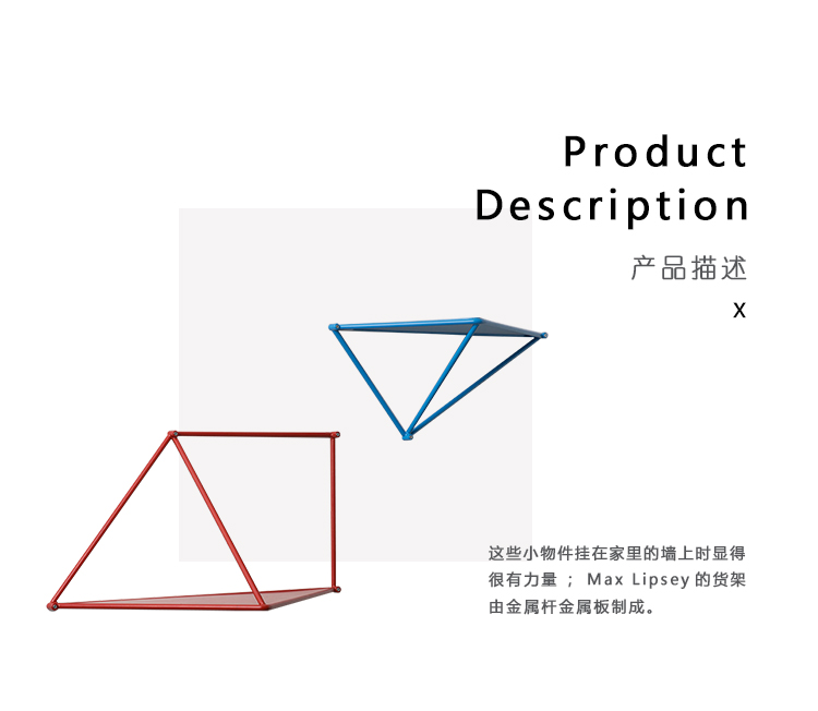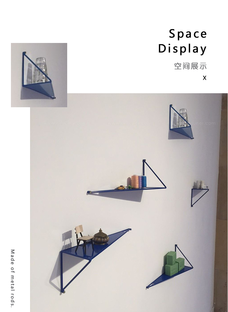 这些小物件挂在家里的墙上时显得很有力量; Max Lipsey的货架由金属杆金属板制成。