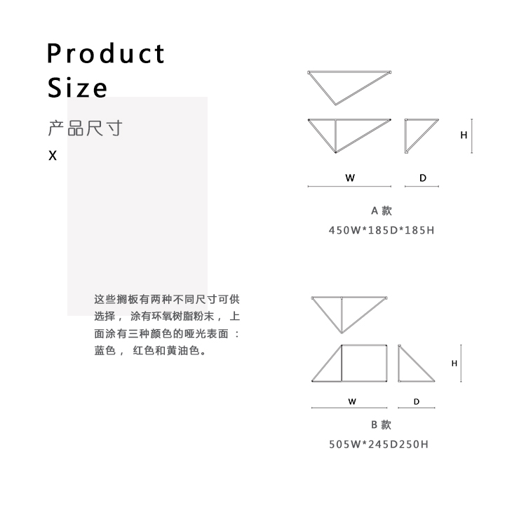 这些搁板有两种不同尺寸可供选择,涂有环氧树脂粉末,上面涂有三种颜色的哑光表面:蓝色,红色和黄油色。
