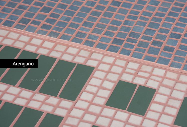 一块马赛克地毯,庆祝米兰阿伦加里奥宫殿80周年及其由建筑师Portaluppi、Muzio、Magistretti和Griffini签署的项目。 在建筑立面上再现不对称几何形状的相同大理石砖被投射在非织造织物上。