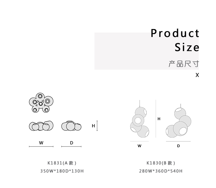 陶瓷灯由Marre Moerel设计,包含6个不同尺寸的球形烛台。 陶瓷灯由象牙色釉面陶瓷制成; 内部烛台由光滑的白色陶瓷制成。