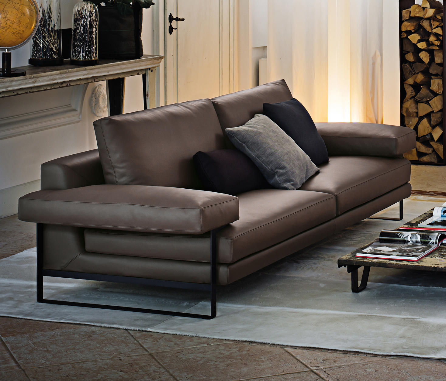 雕刻的几何线条赋予了它巨大的个性和独特的风格和最大的舒适感。超大号的座椅,后背和扶手都非常柔软。自我是20世纪80年代的沙发概念的最新阐述。脚,可在镀铬或云母褐色的金属上,支撑着宽阔的扶手。