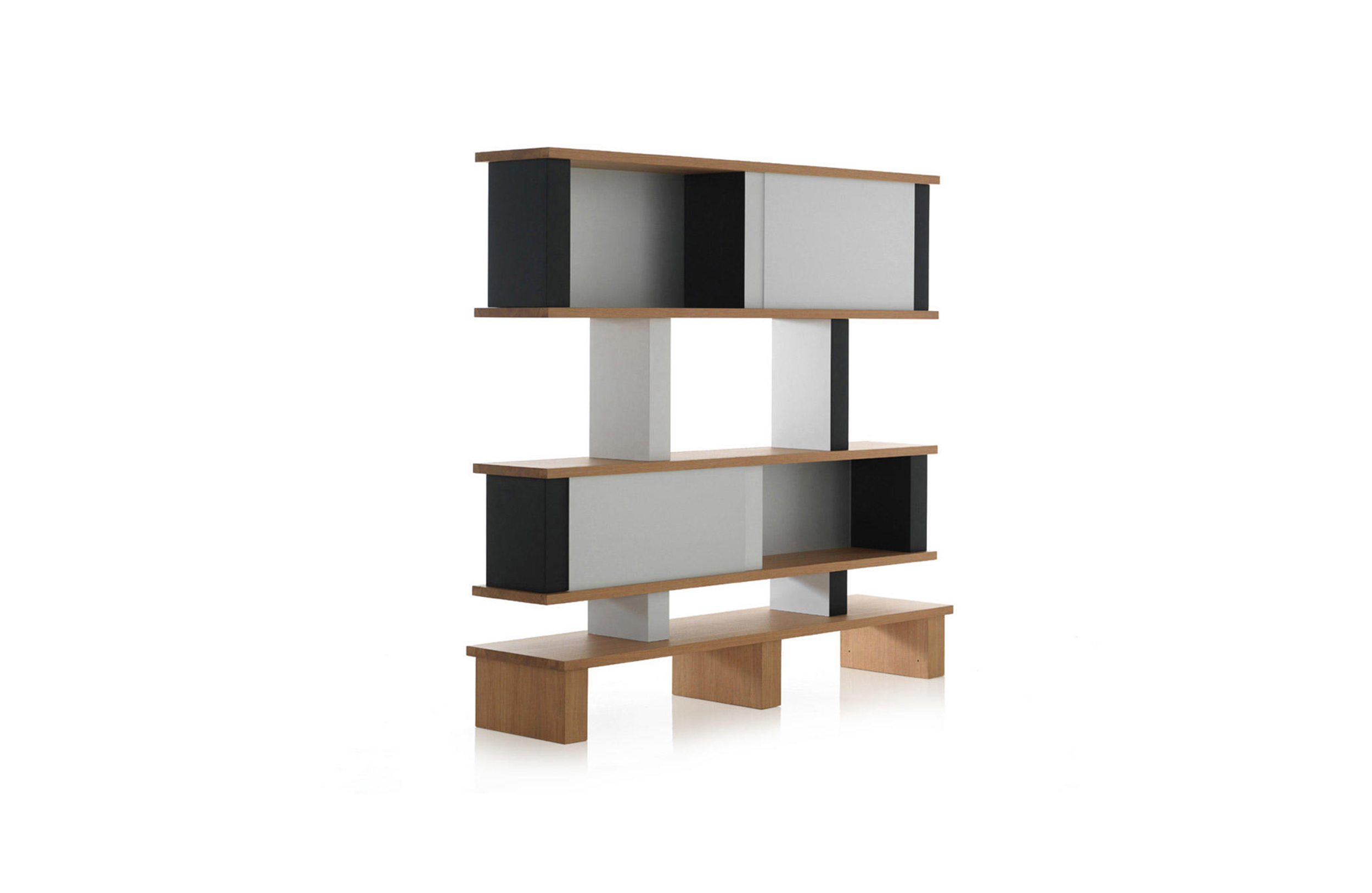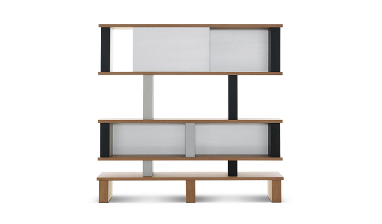 体积和空间的随心改变以及垂直结构的色彩排列变化使这款书柜极具动感。它有高、低两种款式,书架用天然橡木并在垂直方向交替漆以黑白双色。 滑动装置镀有缎铝阳极氧化膜。