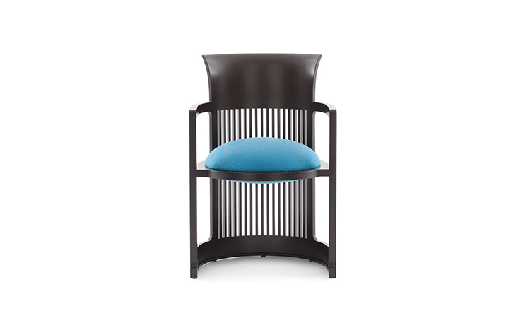 曲背餐椅,采用天然樱桃木、樱桃木色或黑色的胡桃木制造。塑料座面采用聚氨酯海绵和喷胶棉填充。座面软包为皮革或布艺面料。