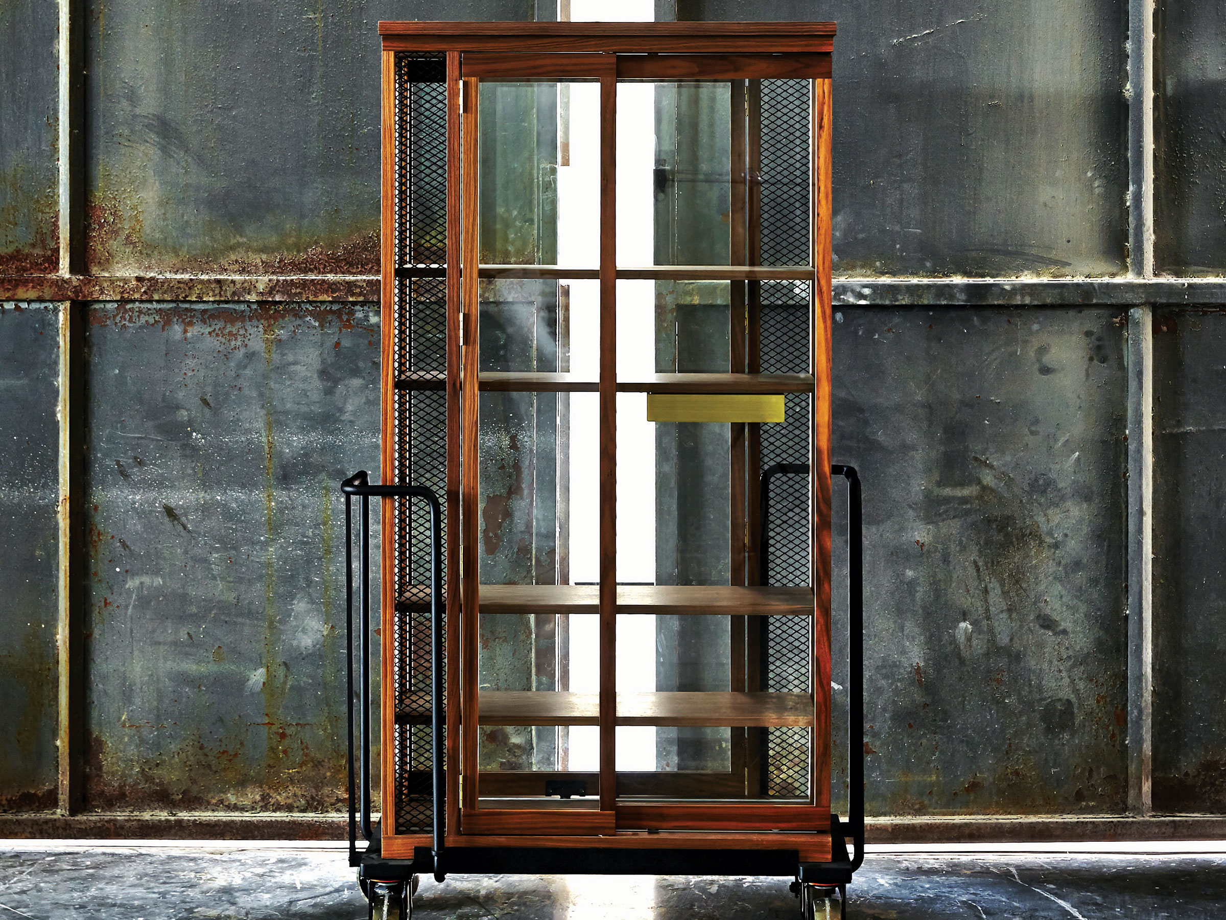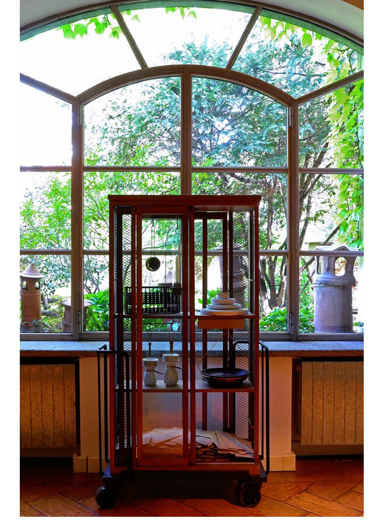 带玻璃门的木柜是从KIHARA陶瓷烧制金属手推车受启发设计,推车进入火炉,该炉代表着我们在生活中都会遇到的考验和磨难,从中我们贡献的汗水和泪水,痛苦和快乐。然而,正是通过燃烧这些罪恶和秘密,我们得以洗净。秘密揭晓或深藏起来,皆取决于我们自己。